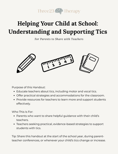 A parent-friendly guide to help teachers understand tics, respond appropriately, and implement classroom strategies that support students’ learning and well-being.